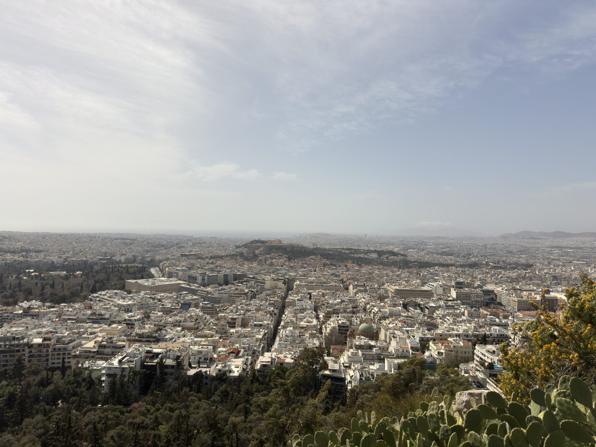 At the summit, the wind was howling. Visibility wasn’t great, the Acropolis was hiding in the haze, but I didn’t care. I’m a sucker for those 360-degree panoramas. I just sat there enjoying the moment, wishing my wife was with me. Then again, a “Train & Race” trip isn’t exactly her idea of a relaxing cruise…
