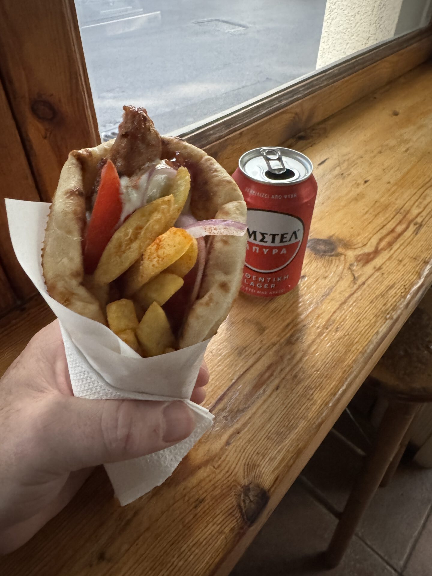 Food-wise, Athens is a heavy hitter. I’d done my homework online and knew exactly where I wanted to go. Marked my favorites on Google Maps (all reachable by foot or a quick Metro hop) and headed straight for my first Souvlaki. Absolute perfection. Just a little hole-in-the-wall joint that pumps out thousands of Souvlakis and Gyros a day. First stop: Check.
