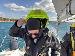 This is exactly what we signed up for. Not memorizing rulebooks, but raw Match Racing with two identical boats under all kinds of conditions. It didn’t take long to realize that Benoit saw us as a proper race crew, not some holiday sailors. At first, I actually thought, “Man, what’s this guy’s problem?” But it was exactly what we needed. You don’t get peak performance without a bit of pressure and a push. We had to learn that the hard way, but once we did, it was totally fine. Since we mostly communicated in English, he struggled a bit to articulate clear commands in high-stress moments, and as every sailor knows, that’s a direct recipe for even more stress.