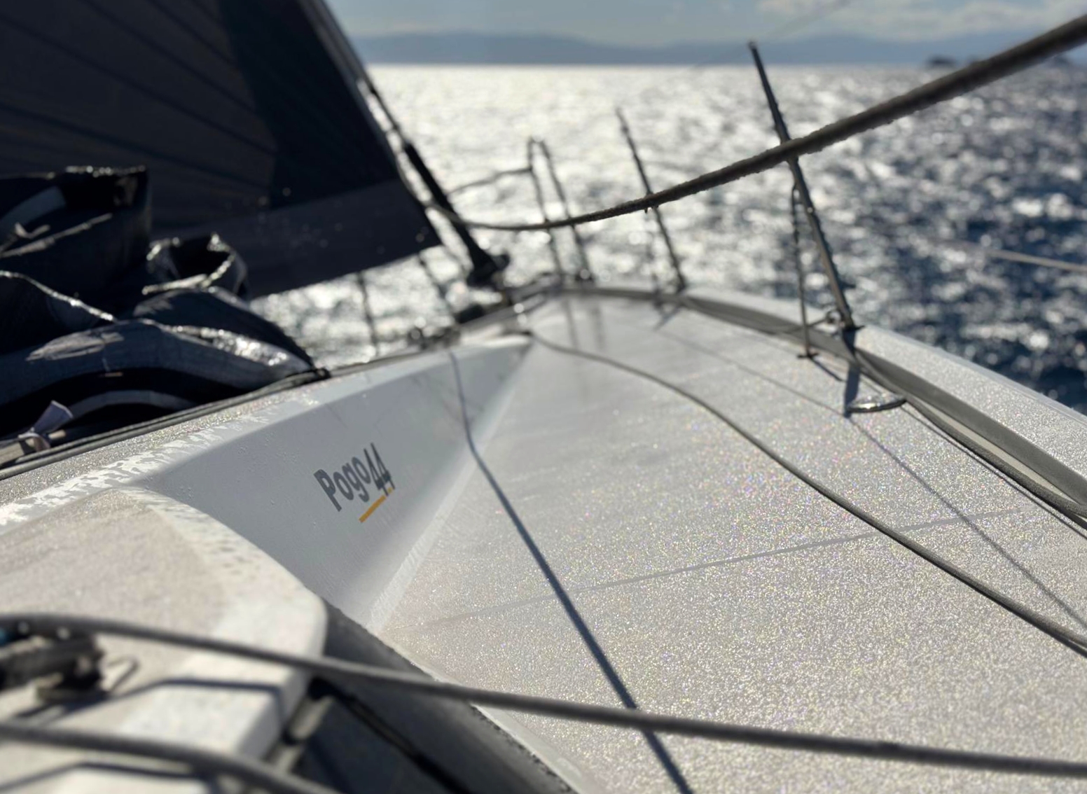 The sheer amount of fast glass in the marina is mind-blowing. It’s like a “Who’s Who” of performance yachts, and “my” Pogo is right in the thick of it.